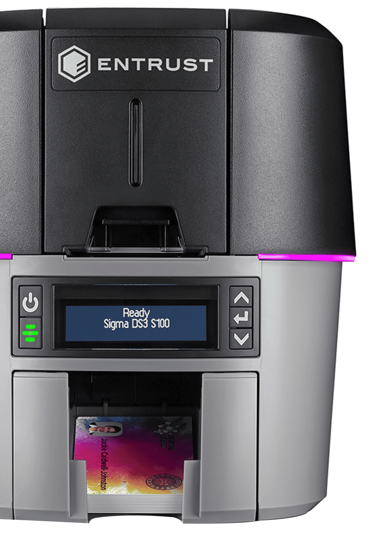 From student and government ID cards to corporate employee and visitor badges, the Sigma DS3 card printer keeps lines moving while helping to protect your assets and people. Packed with industry-leading issuance security architecture, the DS3 will protect your cards and data during each step of the issuance process. Entrust have built the Sigma DS3 with forward-thinking technology and scalability so you can expand your ID card program as your needs evolve.