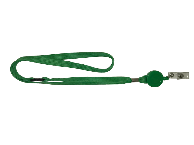 Green 10mm premium lanyard with a green retractable reel, clear vinyl strap clip and safety breakaway.